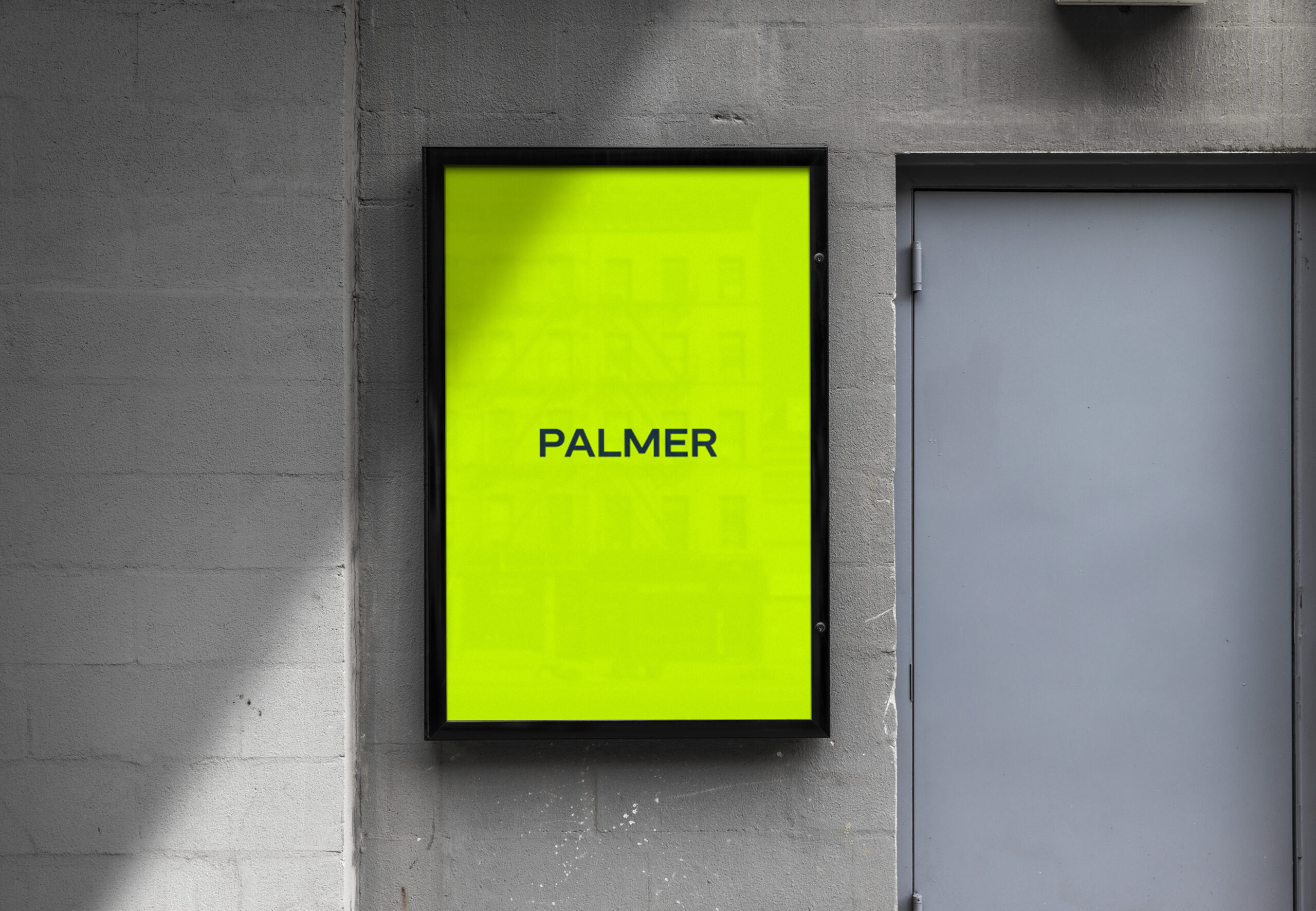 Dans le contexte de Palmer, nous avons choisi une police assez bold utilisée en MAJUSCULES, pour affirmer la légitimité de Palmer. L’utilisation d’un jaune fluo contraste avec un bleu plus sobre, traditionnel et typique du secteur. Une touche de modernité qui ne fait pas oublier l’essence de Palmer.